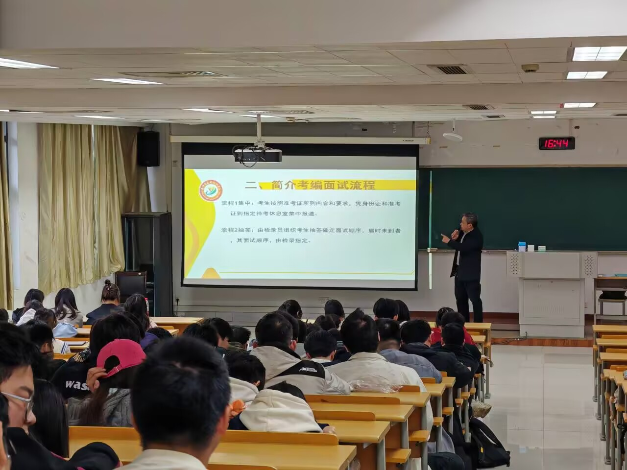 讲座中,陈书记以面试评委视角,系统讲解了教师职业认知、面试流程、注意事项及备考策略。接着,他结合自身经验,深入解读了教师考编的具体流程与核心要求,重点阐述了优质面试课程的设计方法,强调教学应做到环节清晰、衔接自然、互动充分。此外,他还就课程目标设定、核心素养落实及现代教育技术应用提出了具体建议。最后,陈书记分享了多项实用备考策略,并鼓励同学们保持积极心态,夯实专业基础,为未来从教做好充分准备。